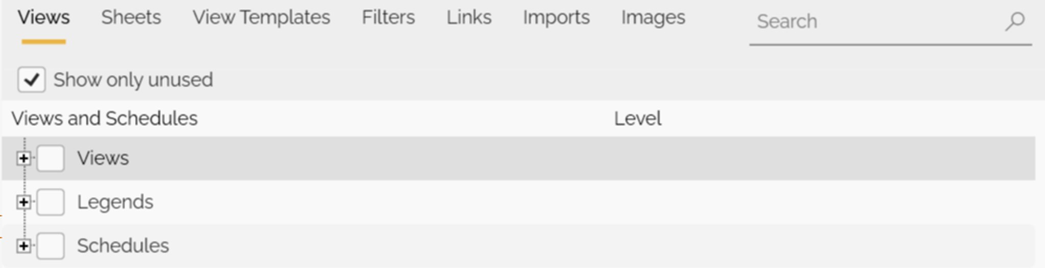 Dieses Tool vereinfacht das Löschen von Views, Plänen, Ansichtsvorlagen, Filtern, Verknüpfungen und Bildern, indem es alle Elemente an einer zentralen Stelle sammelt. Dadurch könnt ihr eure Modelle schnell und effizient aufräumen, ohne mühsam durch verschiedene Registerkarten zu navigieren.