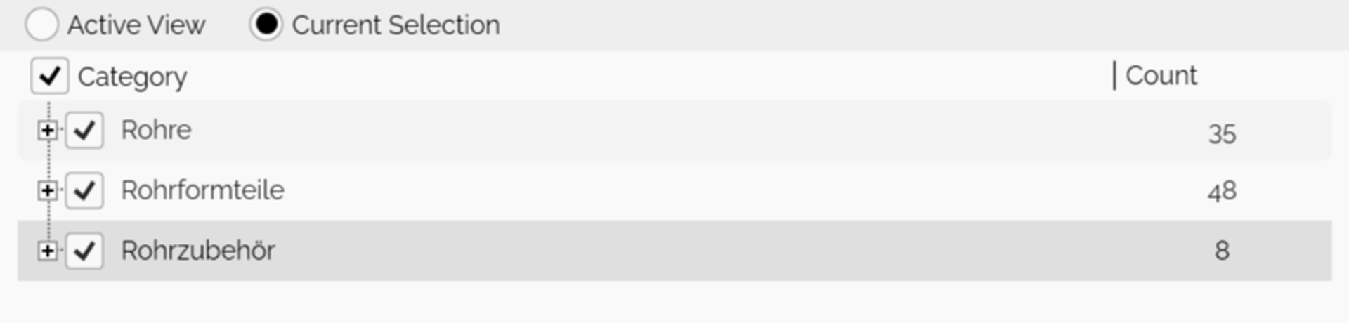 "Export to glTF" erleichtert das Exportieren von 3D-Modellen aus dem aktiven View oder der aktiven Auswahl. Bei beiden Funktionen ist es aber möglich noch weiter filtern: