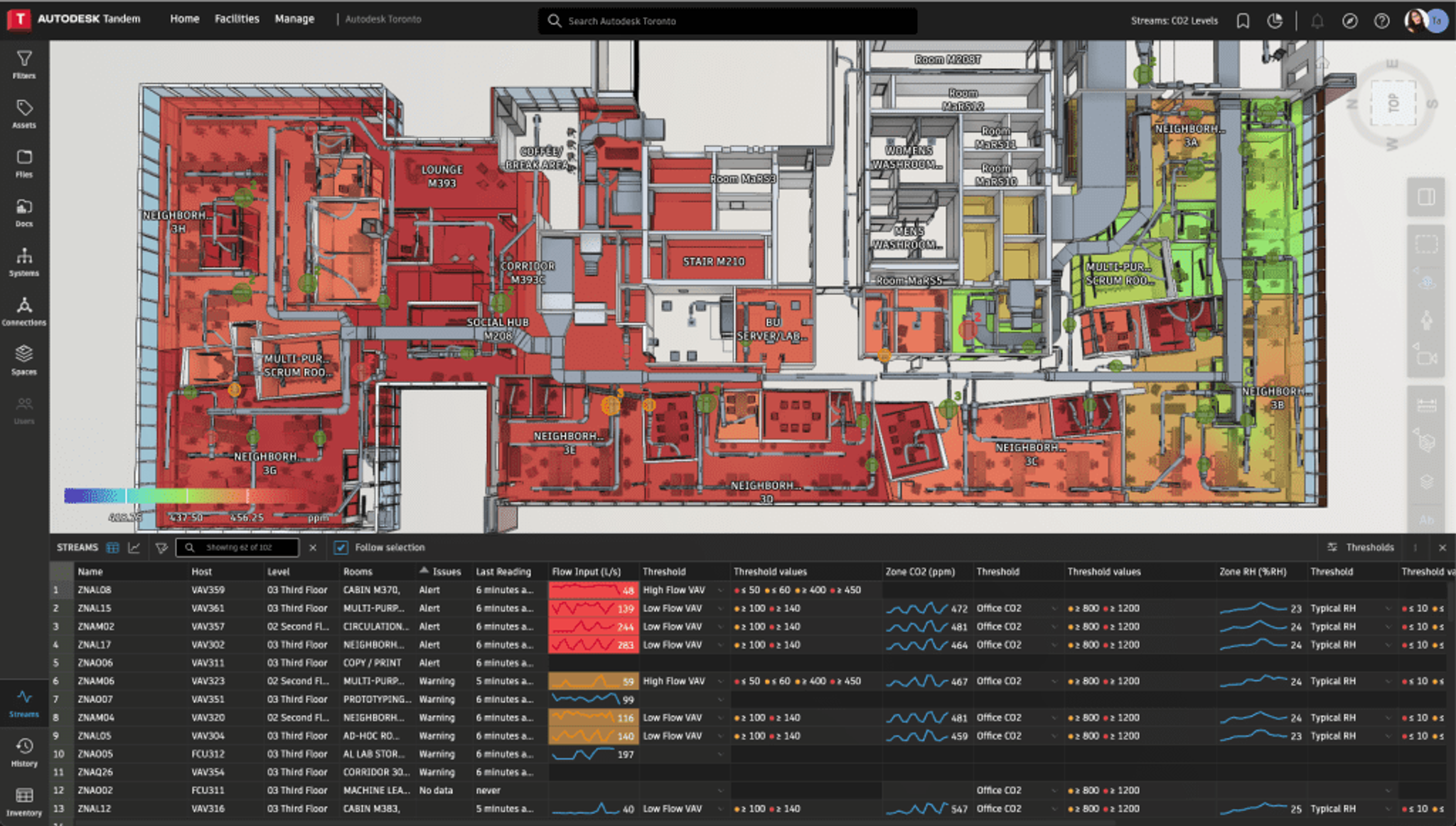 Autodesk Tandem ist eine cloudbasierte Plattform, die speziell für die Verwaltung digitaler Zwillinge konzipiert wurde. Sie verbindet die Vorteile der BIM-Planung mit Echtzeitdaten, historischen Informationen und einer zentralen Datenspeicherung. Dabei handelt es sich nicht nur um ein visuelles Modell, sondern um ein intelligentes System, das Informationen wie Anlagenzustände, Wartungszyklen oder Energieverbrauch speichert und analysiert.